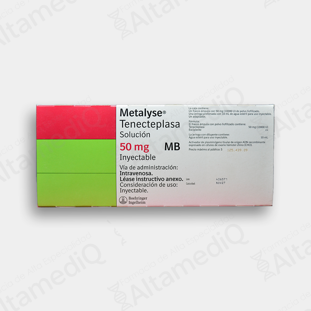 TENECTEPLASA SOLUCION INYECTABLE 50 MG MB CAJA CON 1 FRASCO AMPULA